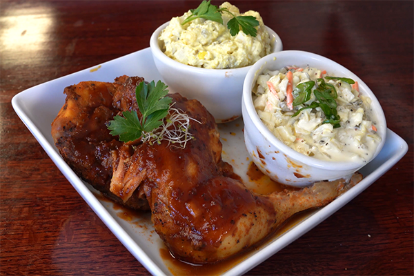 The perfect way to make poultry. Served with two sides and covered in delicious BBQ sauce.