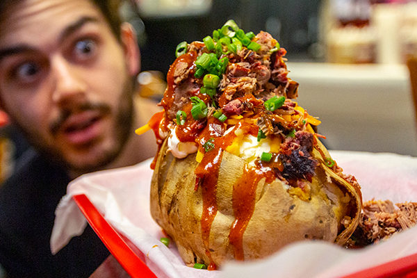 Have you ever seen a baked potato that looks like this ? The Royal Flush at Pit Boss BBQ in Hapeville is completely over-the-top and delicious. Order up some smoked wings, angus beef brisket, and mac and cheese and you’ll be in heaven.