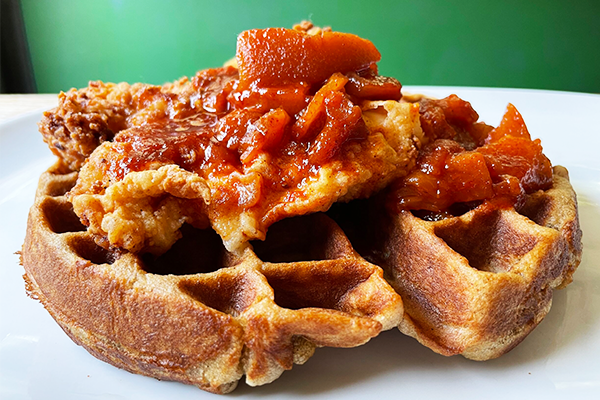 Take, for instance, the Hole In One: pastrami-cured salmon, cream cheese, pickled tomato, onion, and olive tapenade on an everything bagel. It’s just the right amount of funky without being too crazy. There’s also the Foul Play: fried chicken and a house-made sweet potato waffle topped with whiskey-peach compote. It’s chicken and waffles cranked into overdrive!